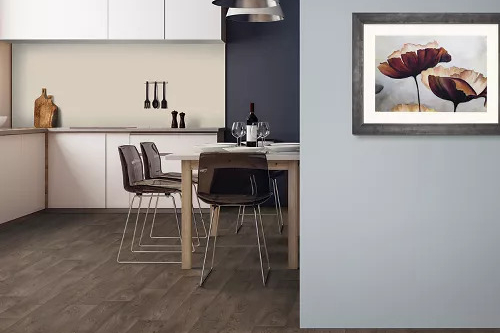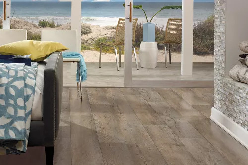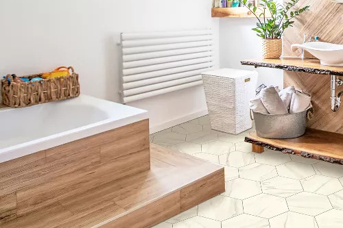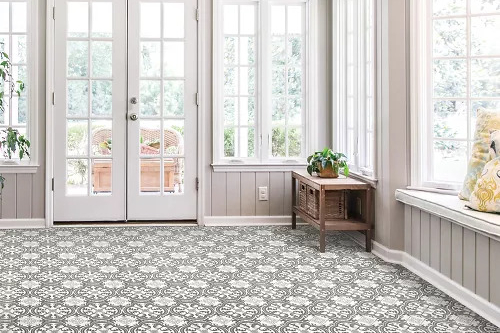 Mohawk’s Versa Tech vinyl flooring delivers exceptional waterproof performance with a seamless finish that prevents dirt accumulation and simplifies cleaning. Its resilient fiberglass construction provides superior durability with built-in protection against wear, stains, scuffs, and scratches, making it ideal for high-traffic areas. Enhanced with innovative technologies like EasyClean for stain resistance and CleanProtect for antimicrobial protection, this flooring maintains its pristine appearance with minimal maintenance. Available in diverse styles from traditional wood and modern tile looks to geometric patterns, Versa Tech offers versatile design options for any room while being proudly manufactured in the USA using globally sourced materials.